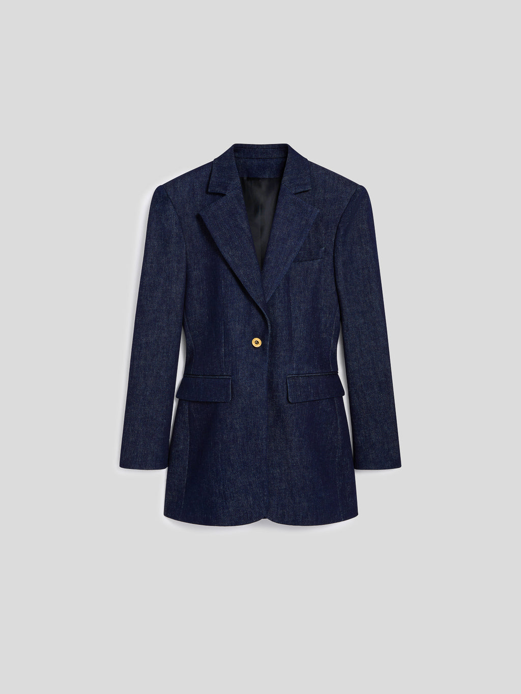 WOMEN'S SINGLE-BREASTED BLAZER WITH MIRROR LAPELS REGULAR FIT IN DENIM BLUE COMFORT