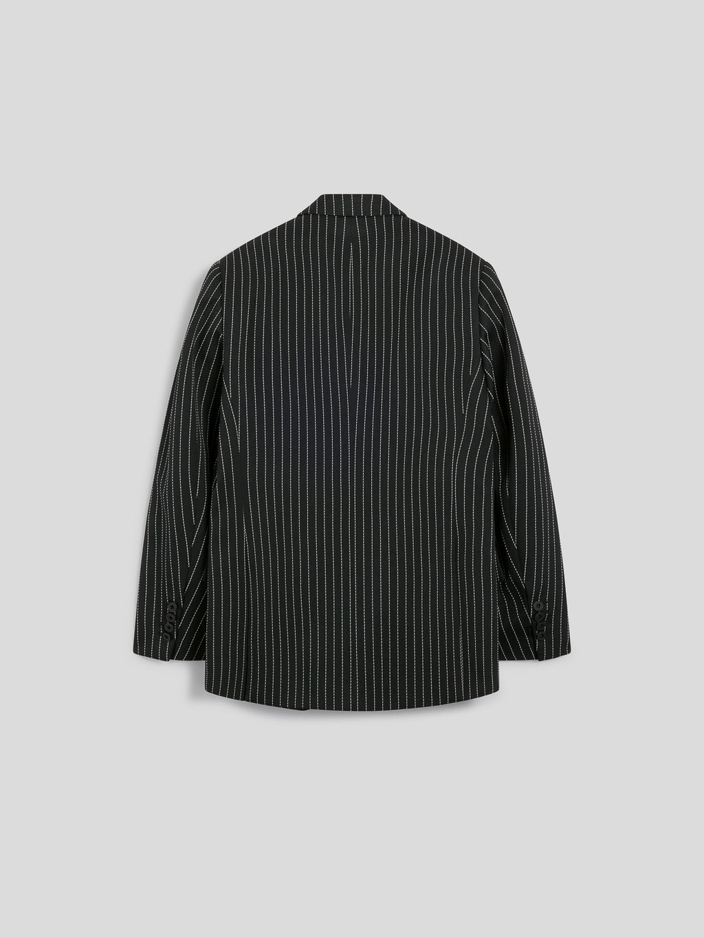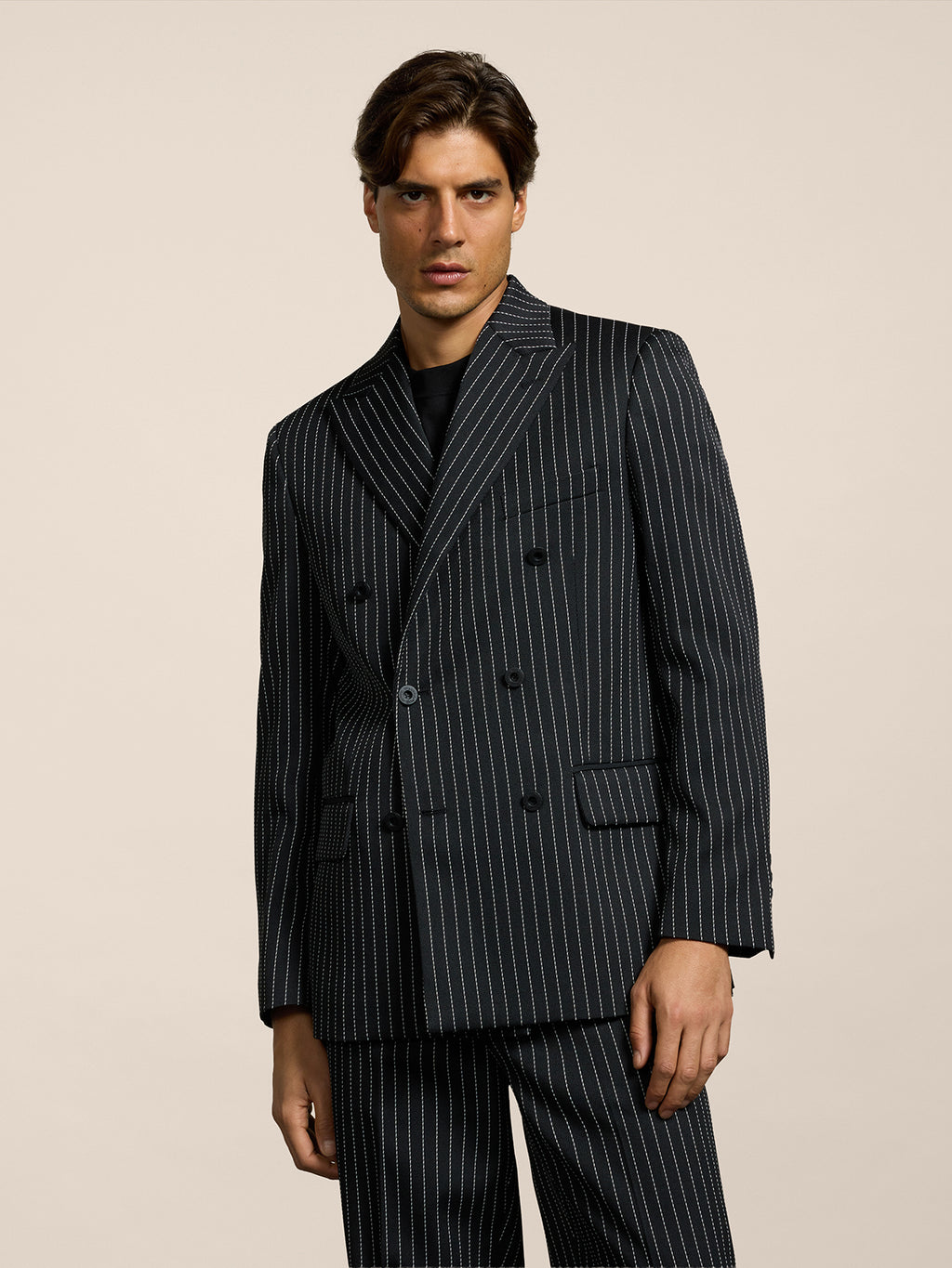 MEN'S DOUBLE-BREASTED BLAZER WITH PEAKED LAPLES REGULAR FIT IN PINSTRIPE BLACK BASE WHITE STRIPES