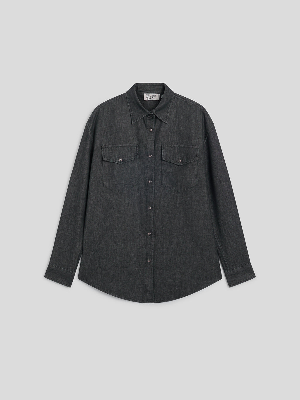 Long-sleeved shirt made in cotton poplin with oversize fit. Clean-cut, ready-to-wear, and designed to enhance the figure. Perfect with denims or elegant trousers. Made in Italy, and crafted with care and painstaking attention to detail.