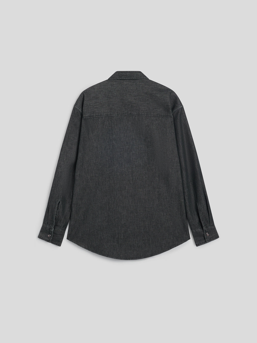 WOMEN'S OVER FIT SHIRT FLAP POCKETS LONG SLEEVES BLACK