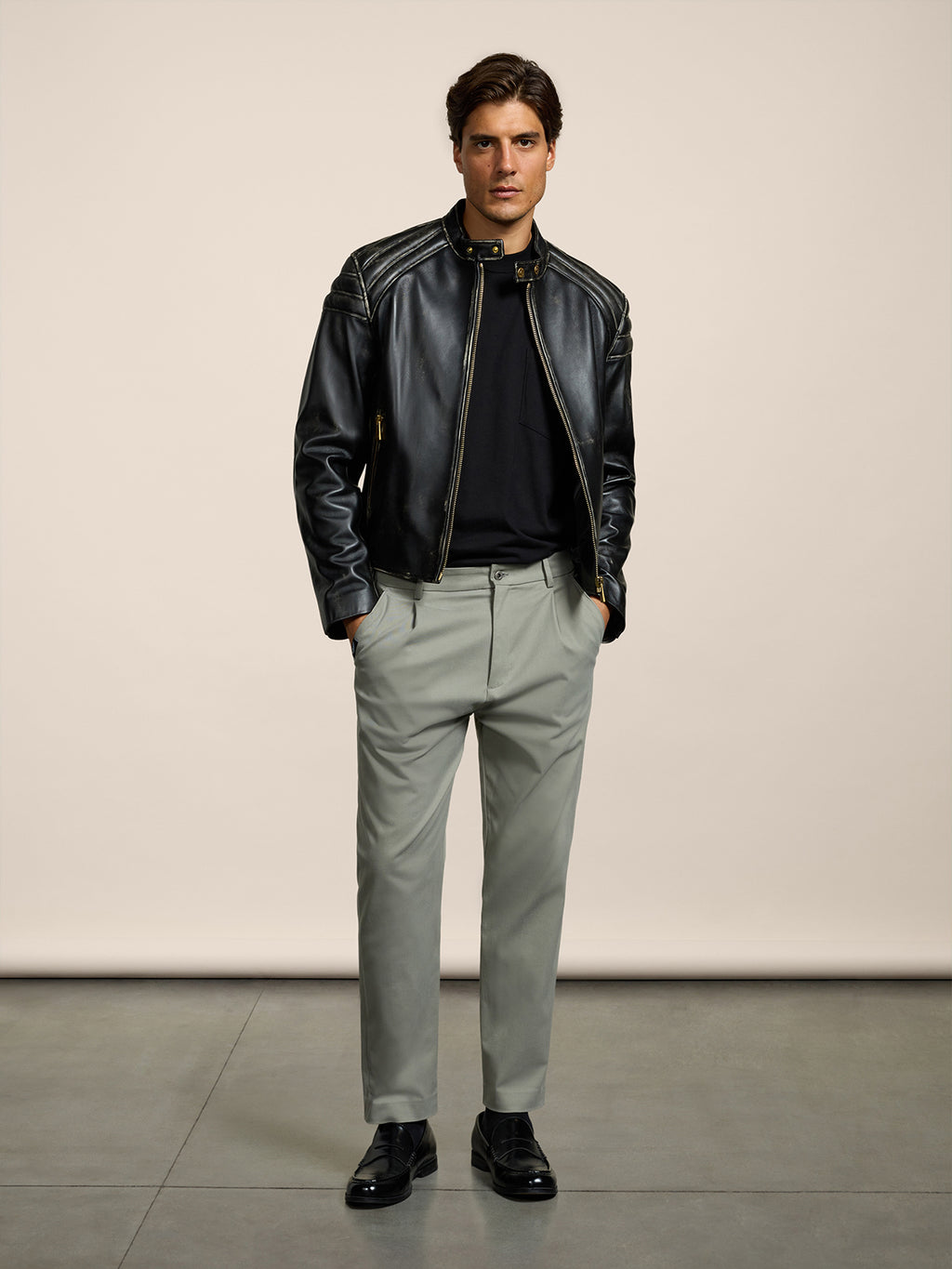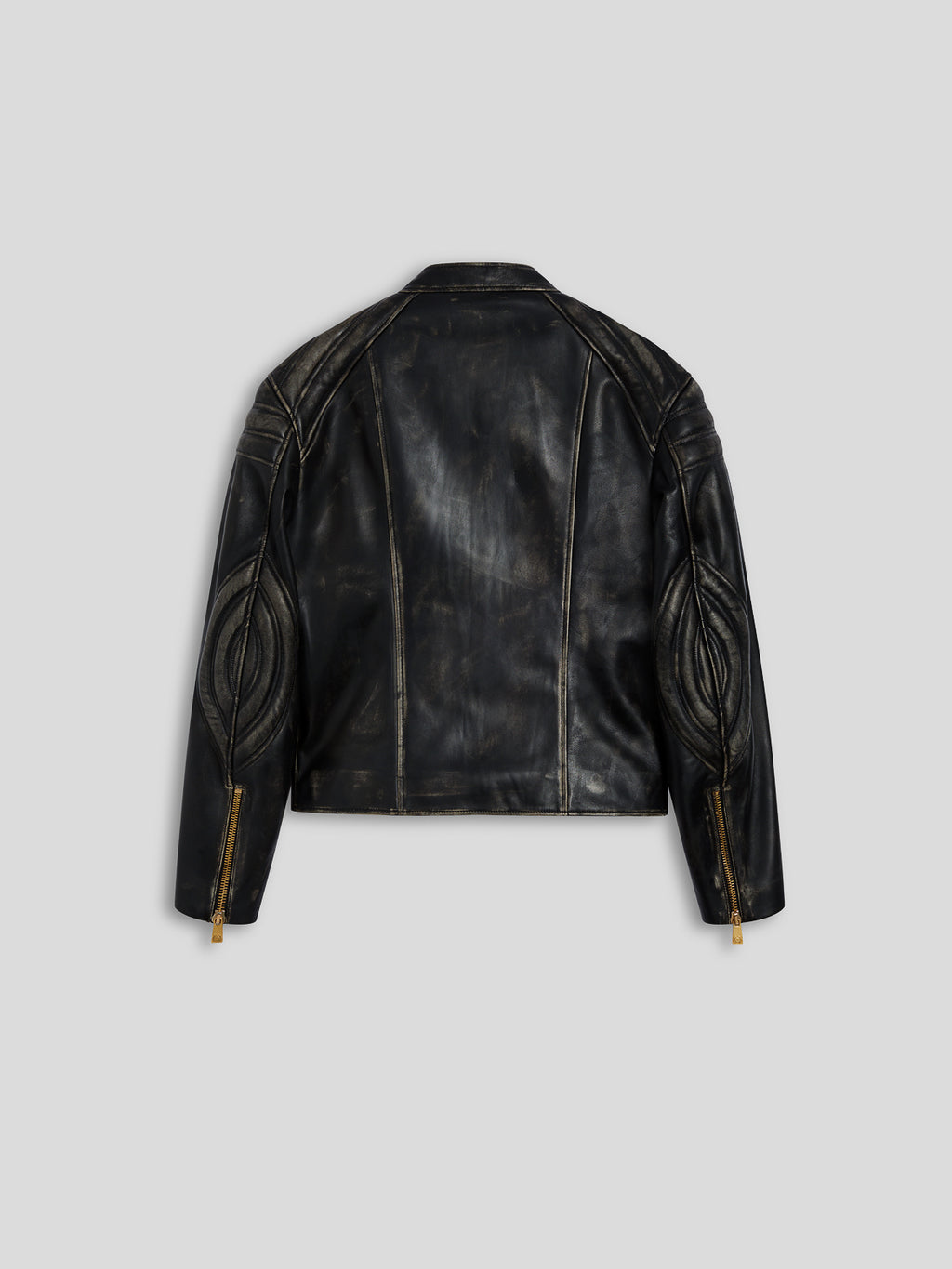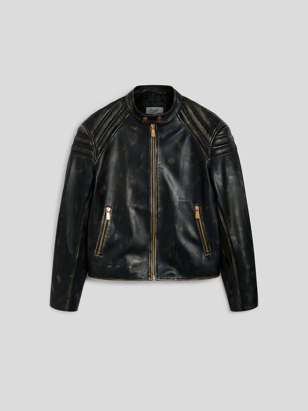 UNISEX BIKER JACKET IN LAMB LEATHER WITH USED TREATMENT BLACK