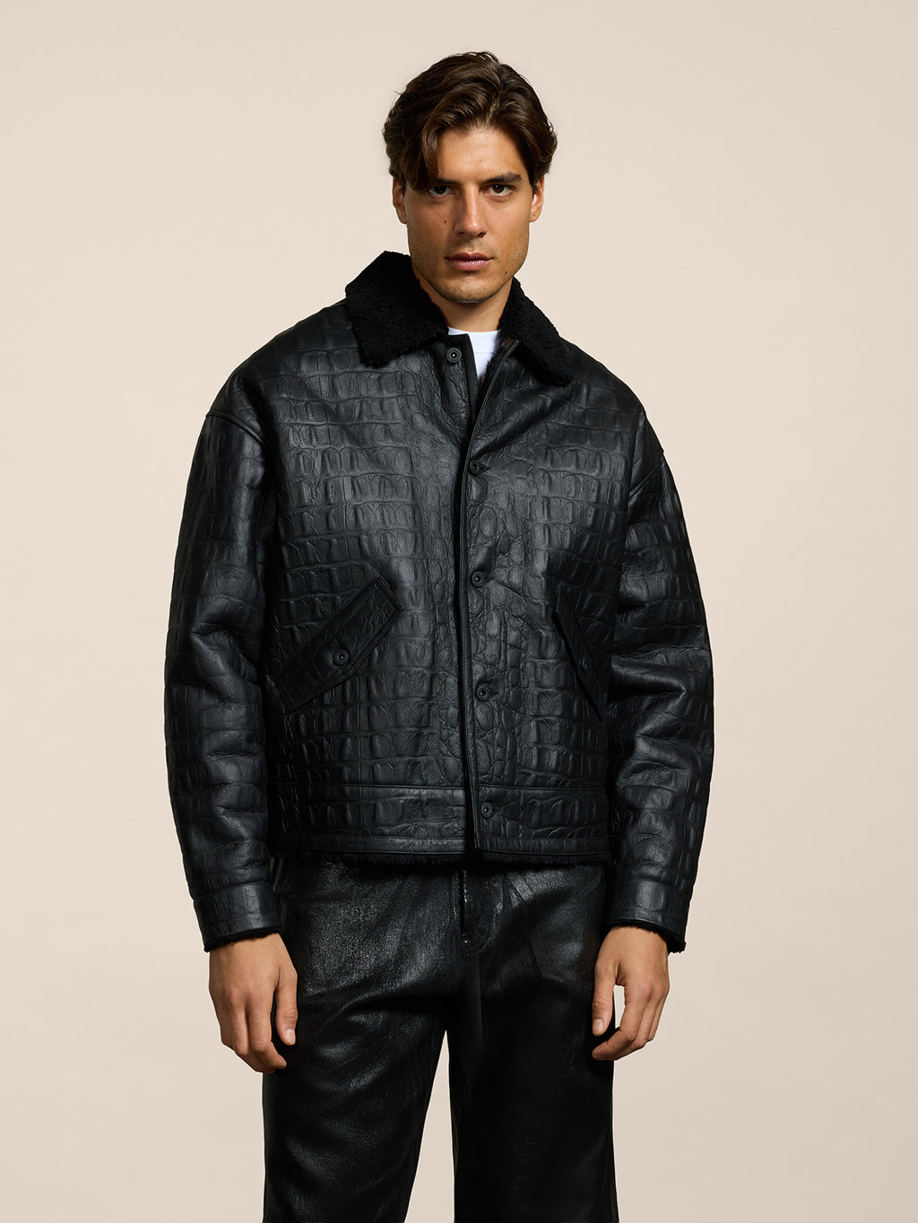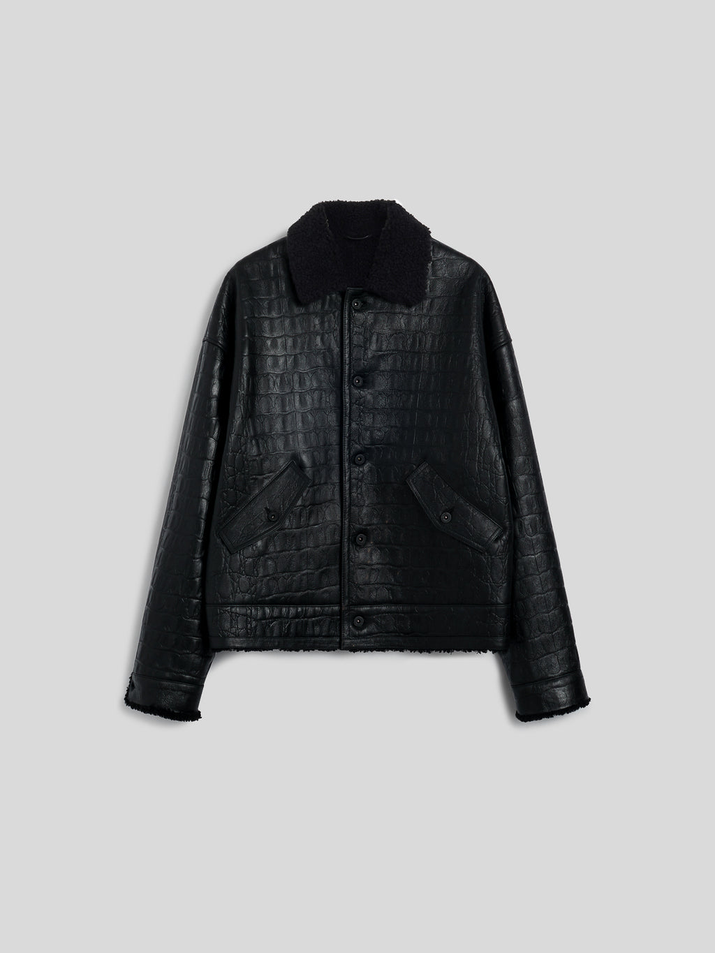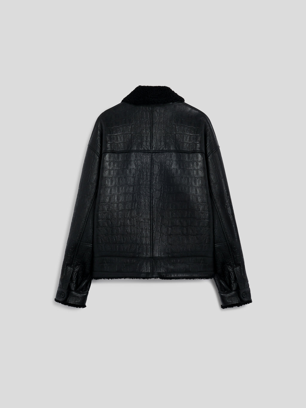 UNISEX SHEARLING JACKET OVER FIT CROCODILE PRINT BLACK