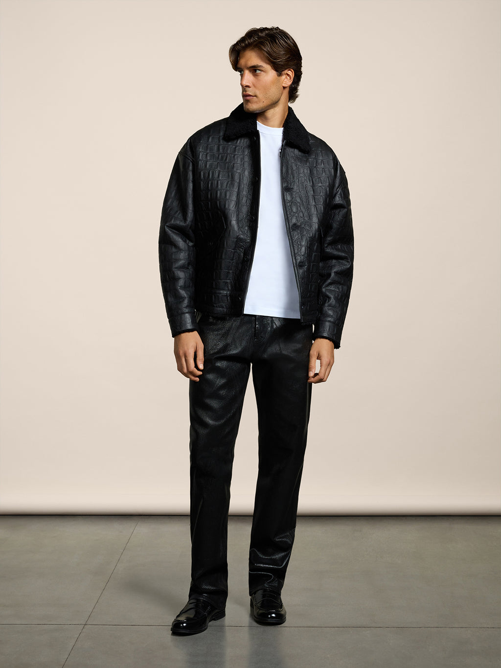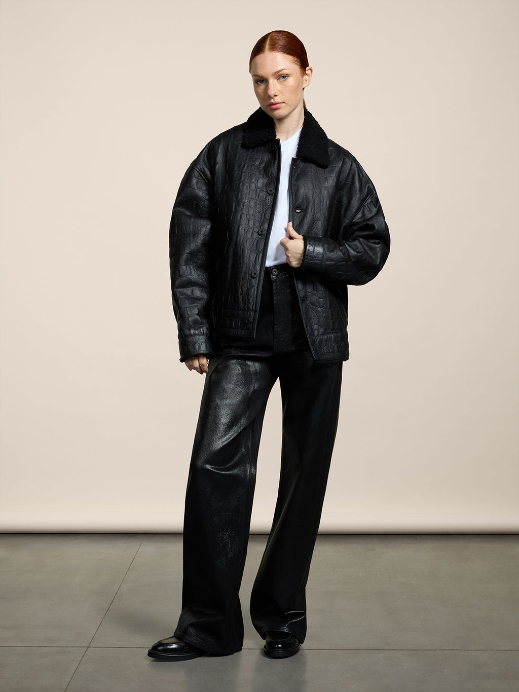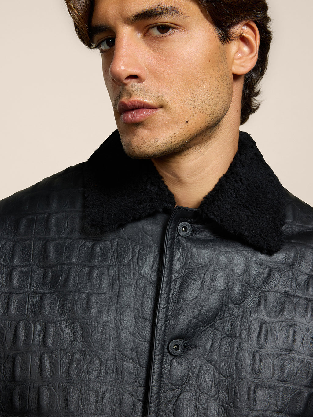 UNISEX SHEARLING JACKET OVER FIT CROCODILE PRINT BLACK