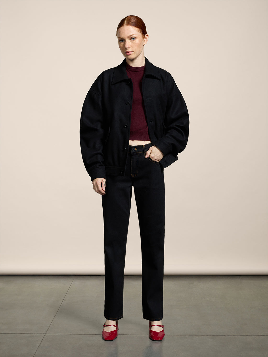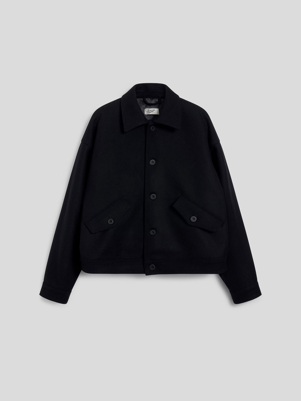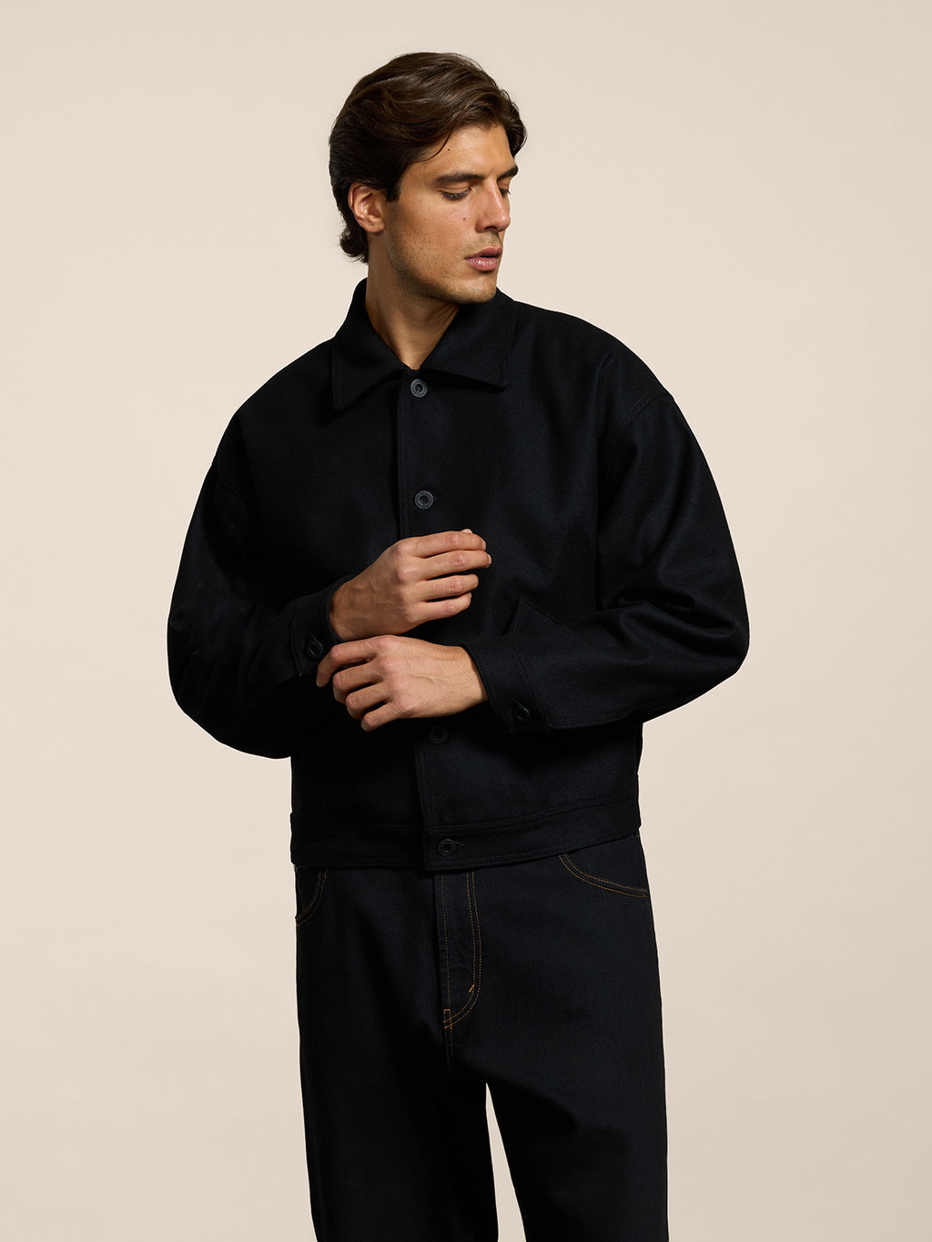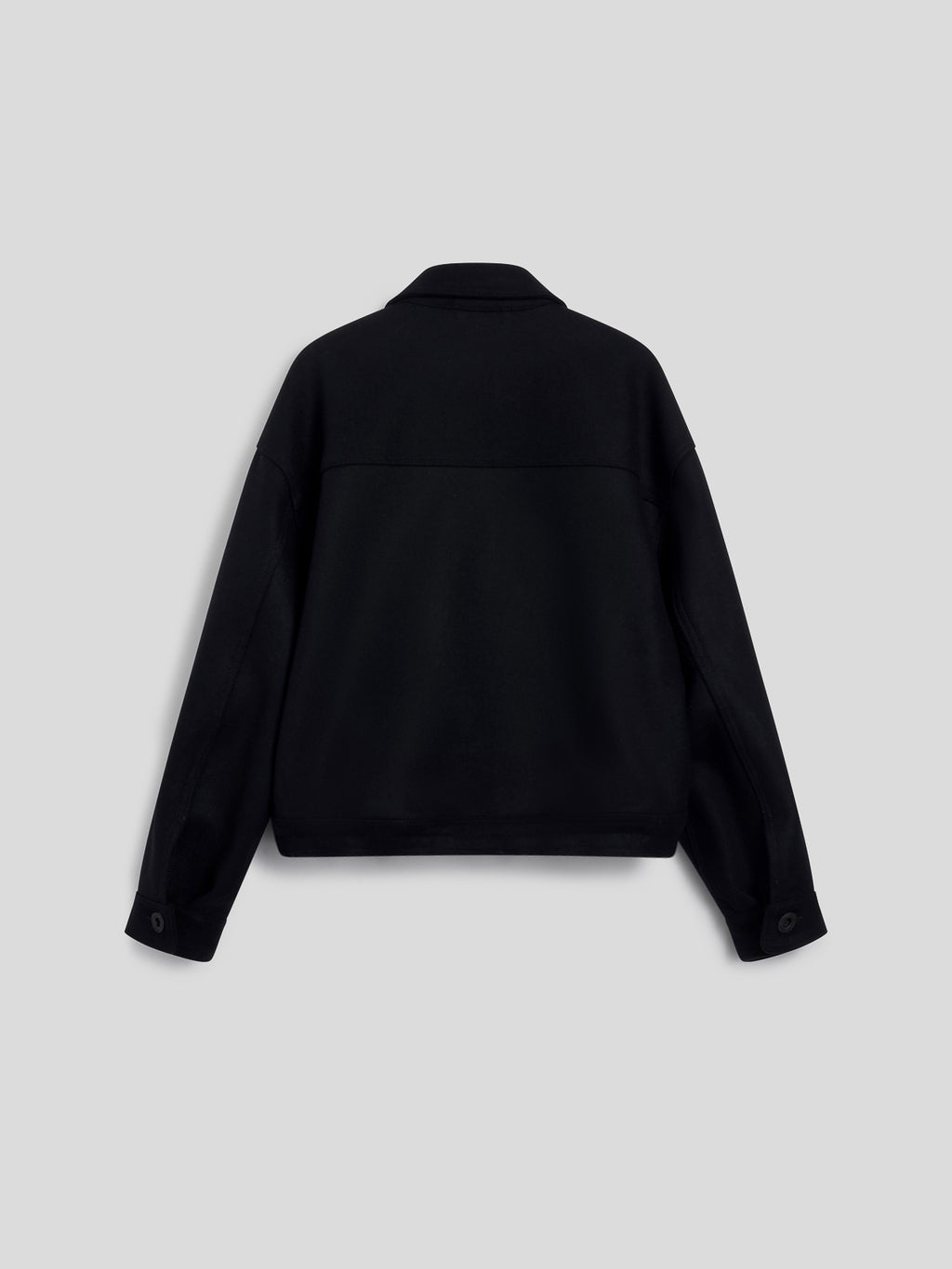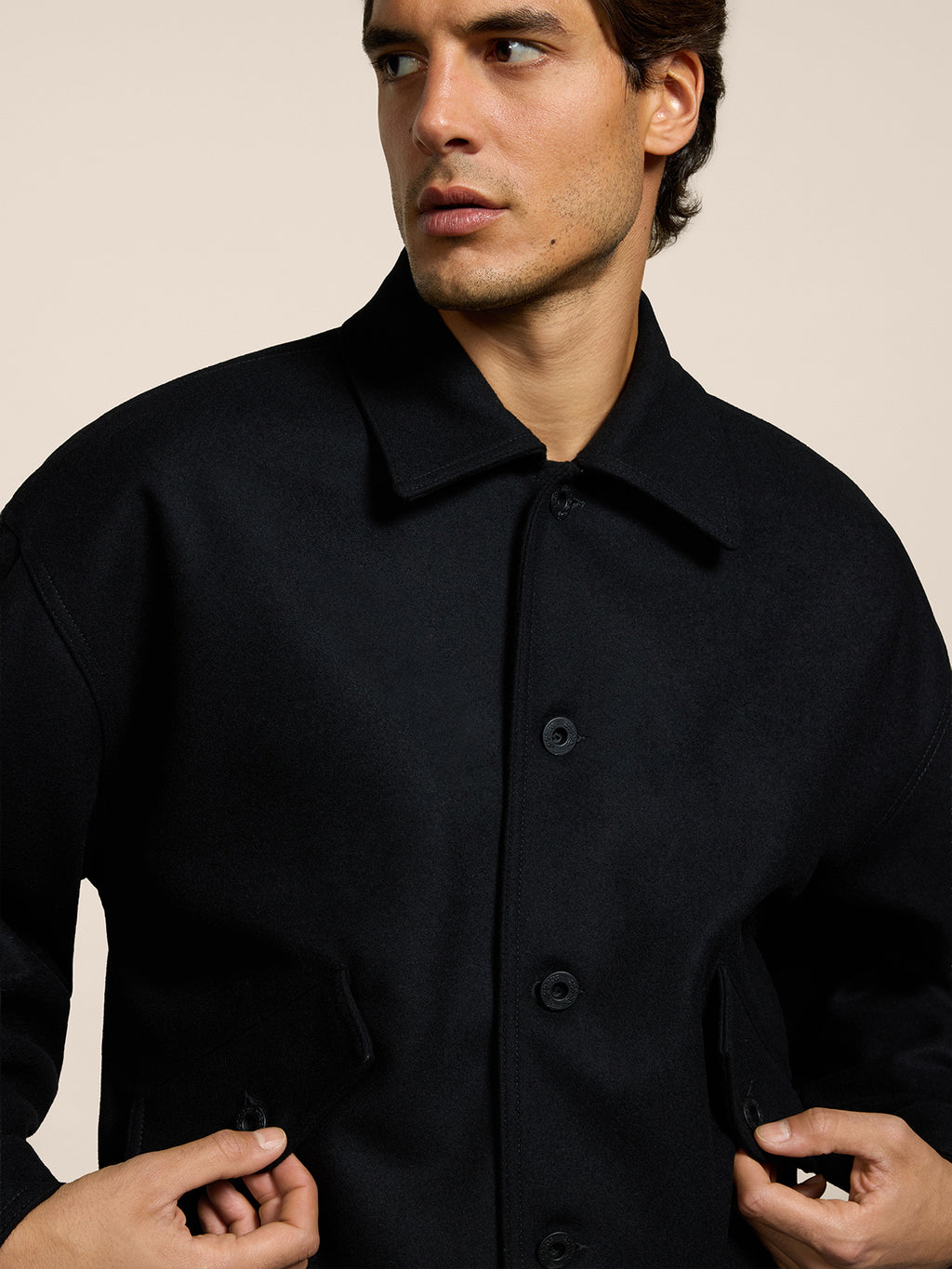 UNISEX OVER FIT WOOL CLOTH JACKET WITH ELASTIC HEM BLACK