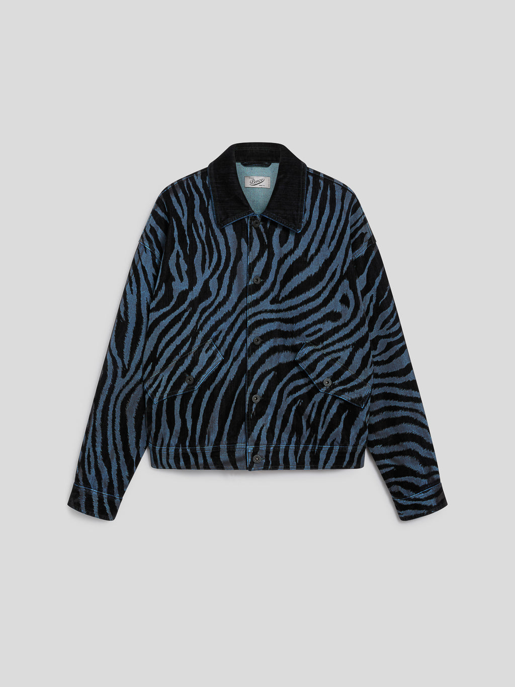 UNISEX DENIM COMFORT FLOCKED JACKET OVER FIT WITH ELASTIC HEM ZEBRA/STRIPED BLUE
