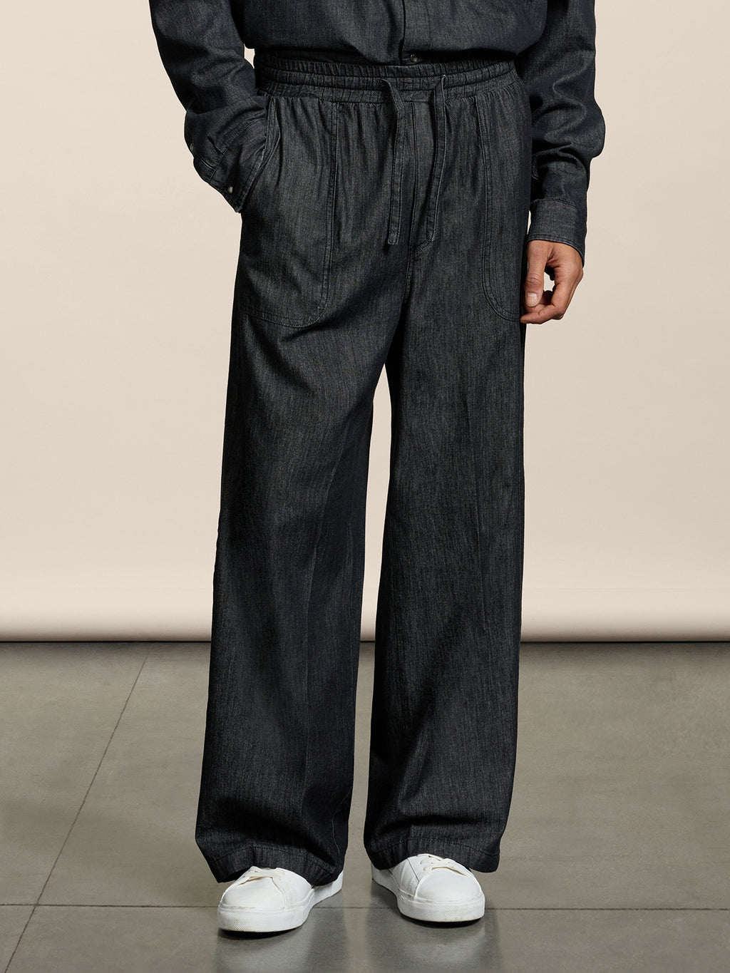 UNISEX JOGGER PANT IN CHAMBRAY OVER FIT BLACK