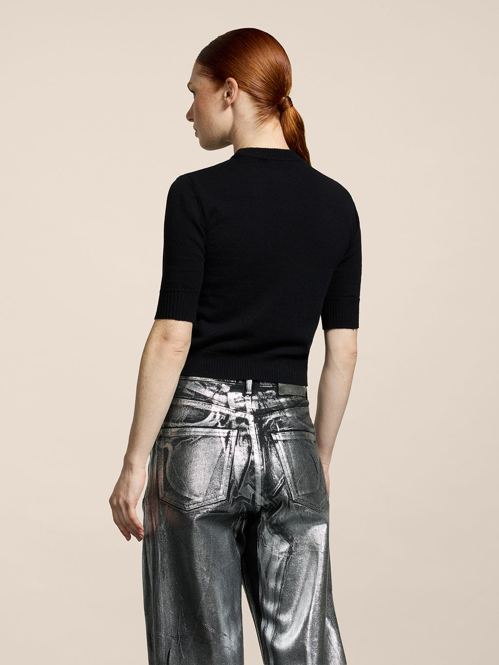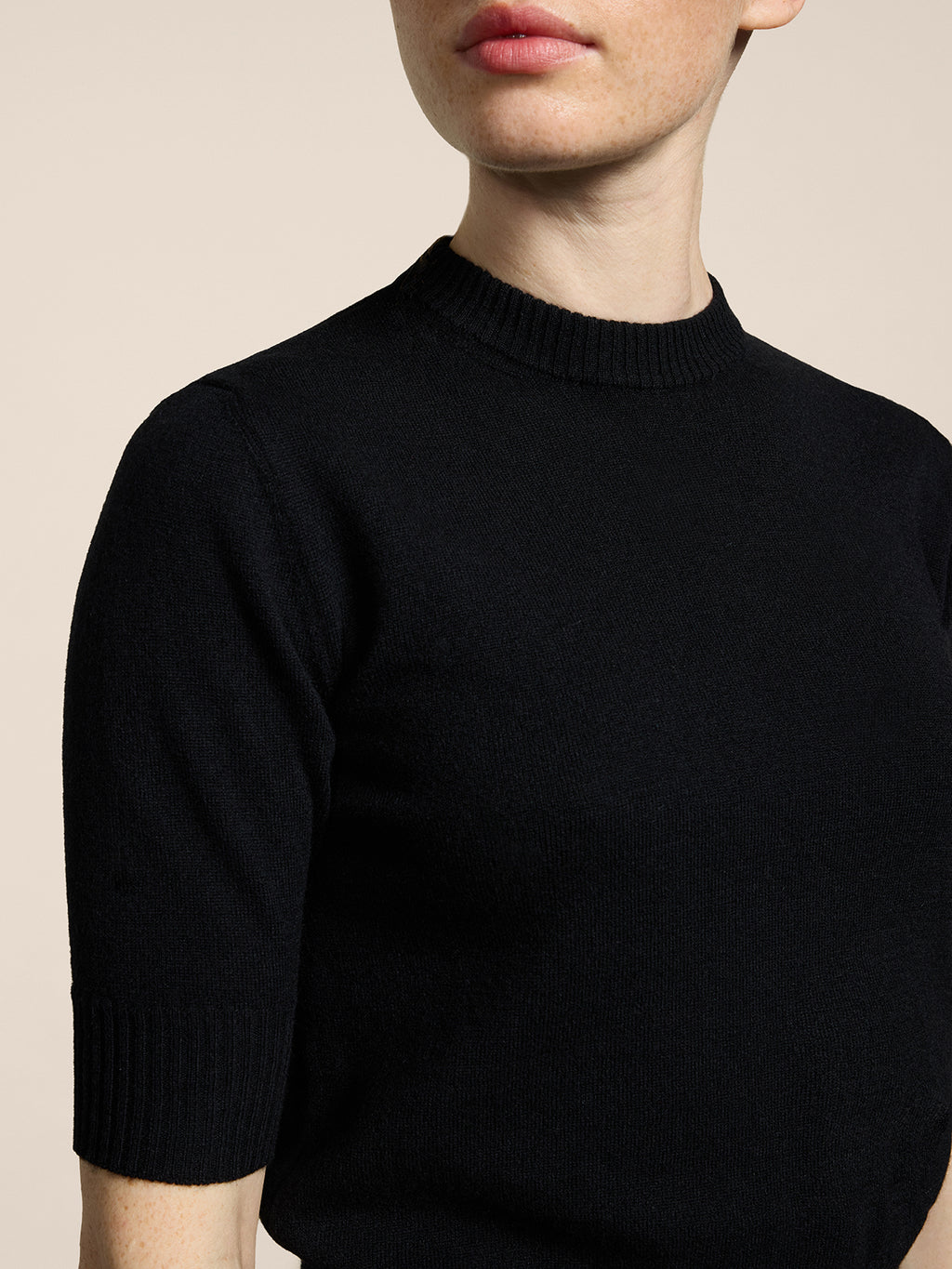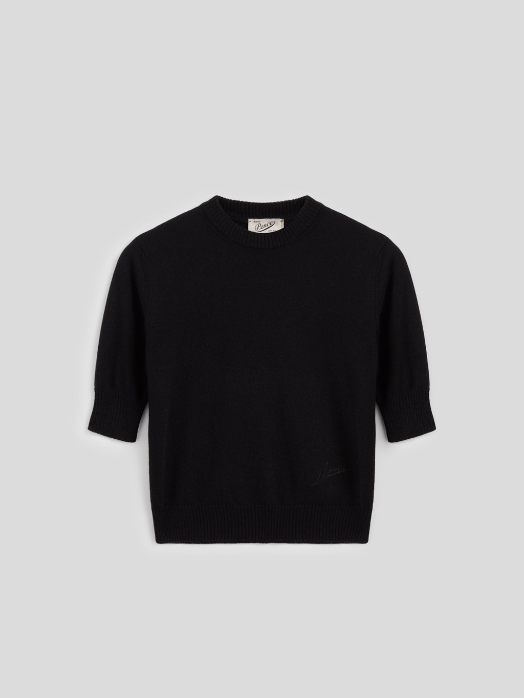 MINI CREW NECK SWEATER SLIM FIT SHORT SLEEVES EMBROIDERED LOGO BLACK