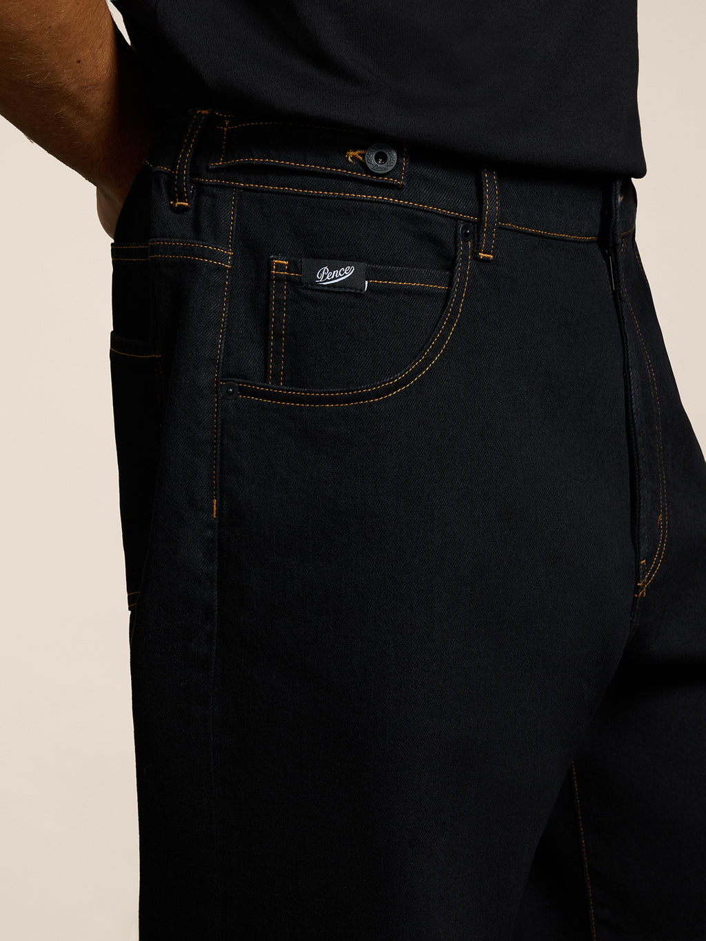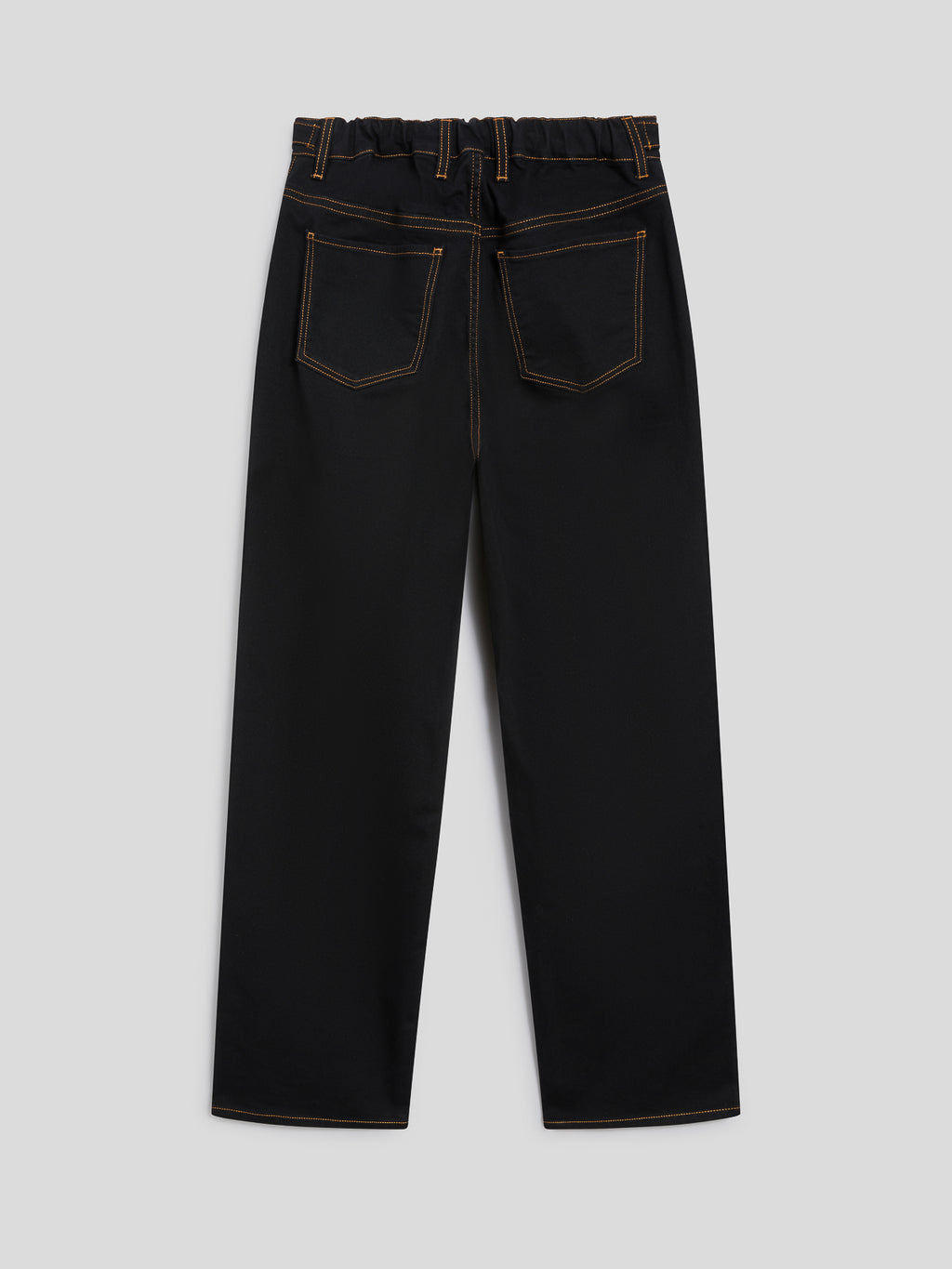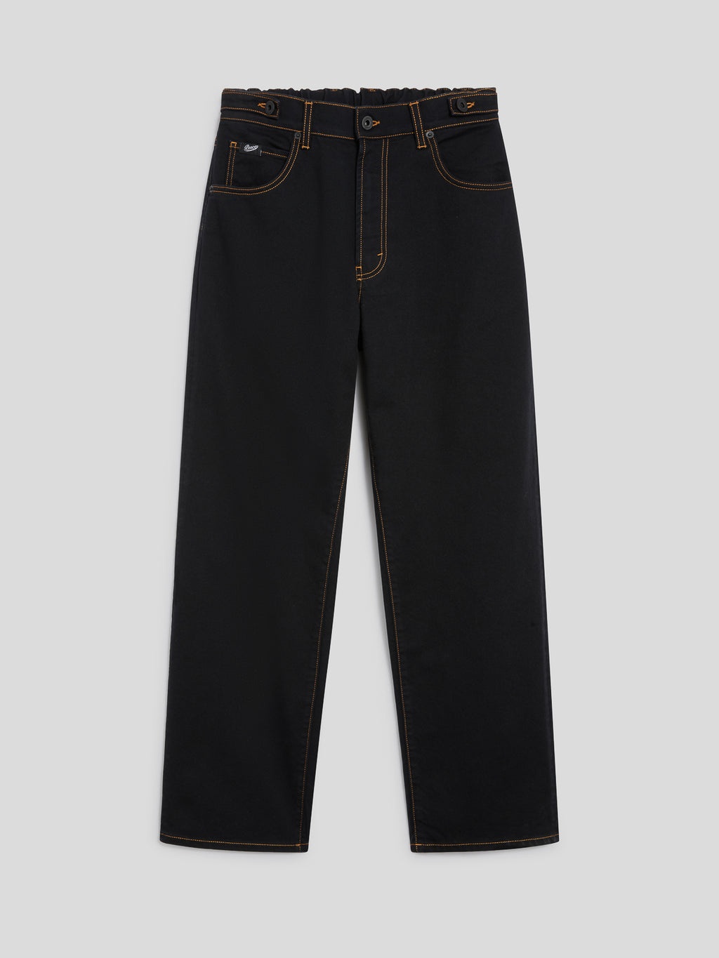UNISEX 5 POCKET RELAXED FIT PANT IN DENIM COMFORT BLACK WITH TOBACCO STITCHING
