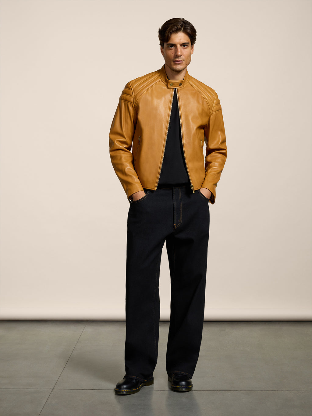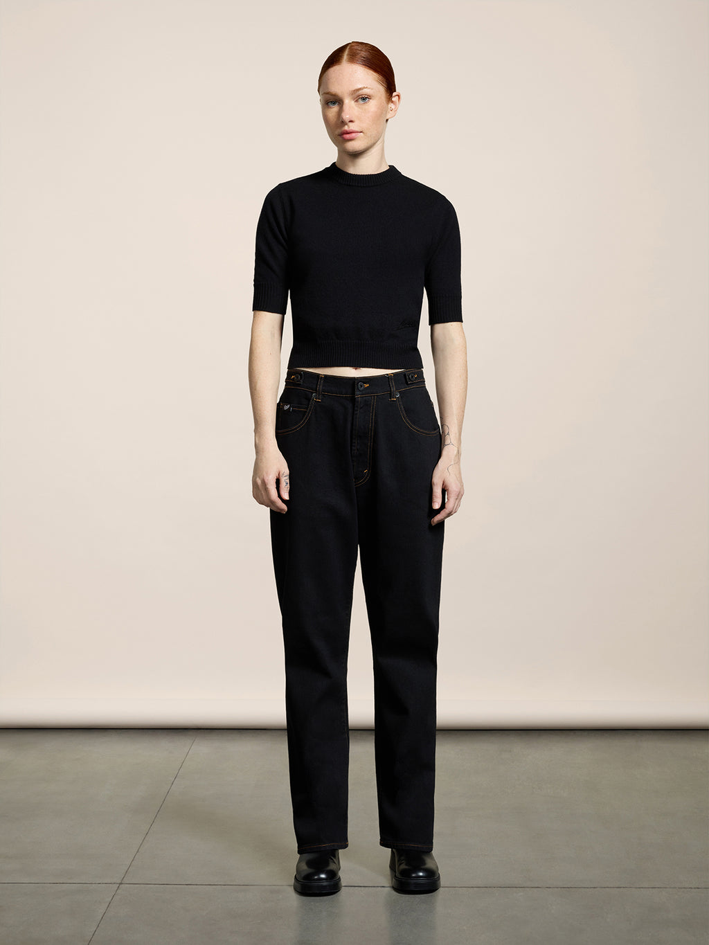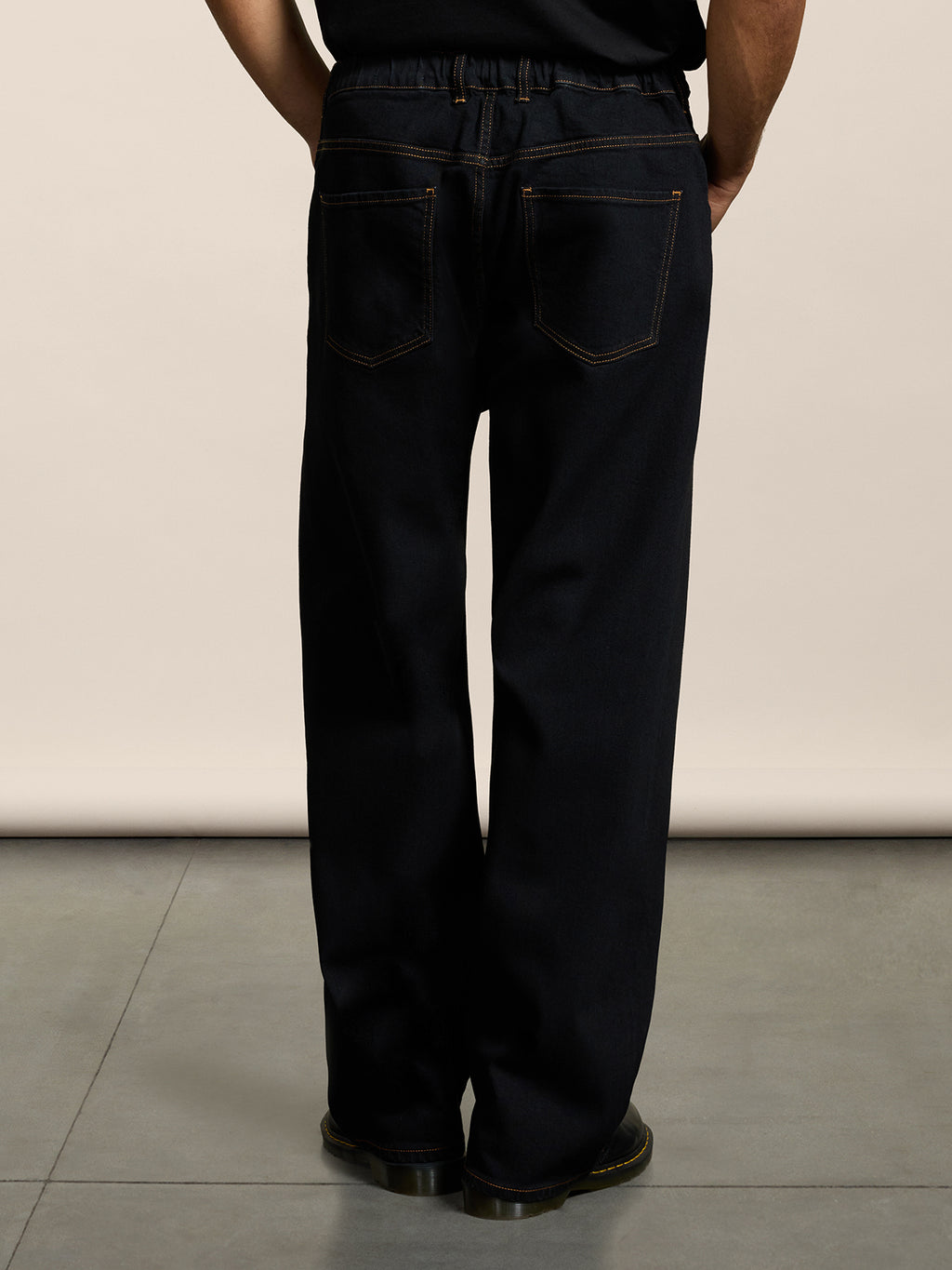 UNISEX 5 POCKET RELAXED FIT PANT IN DENIM COMFORT BLACK WITH TOBACCO STITCHING