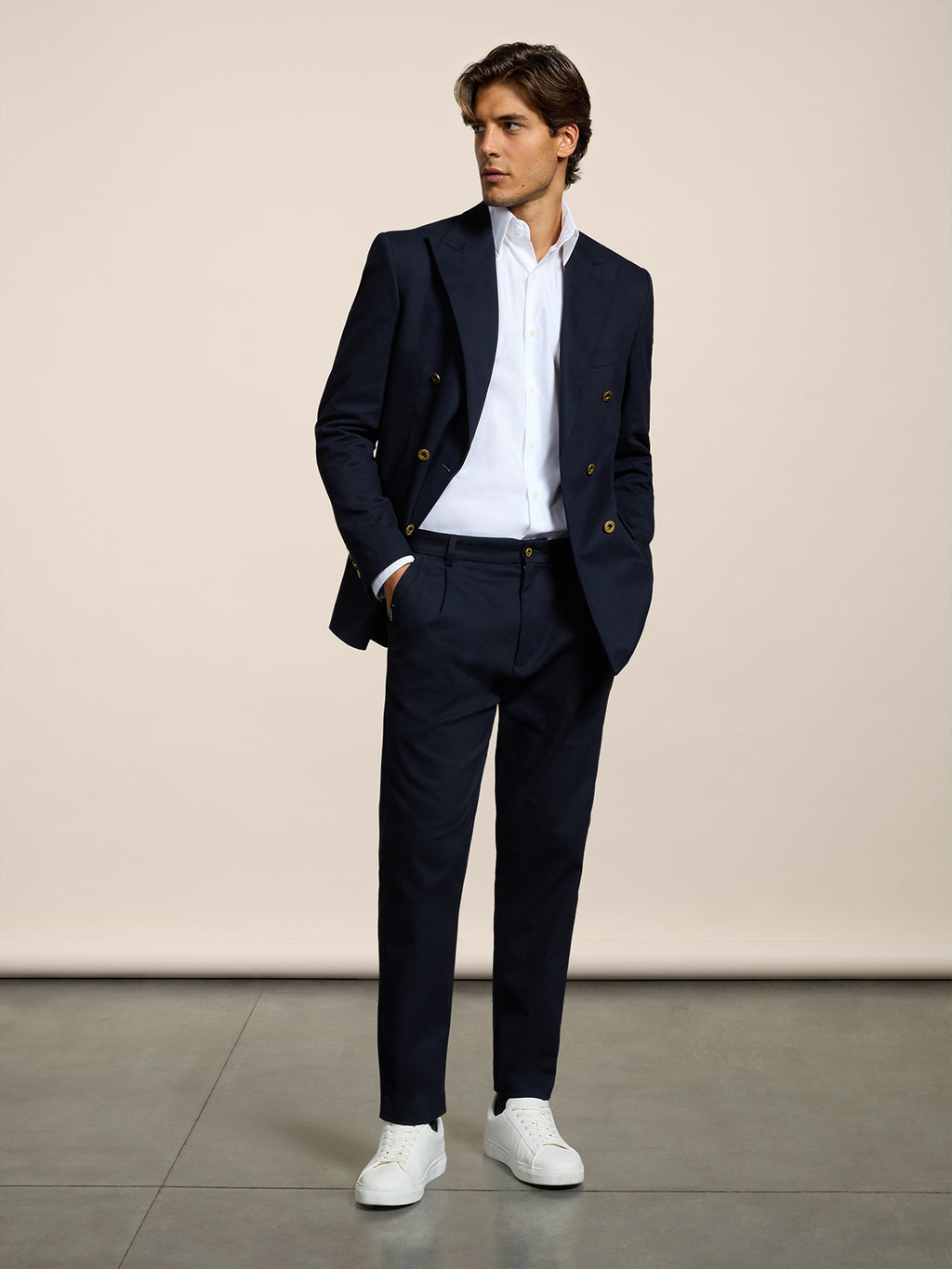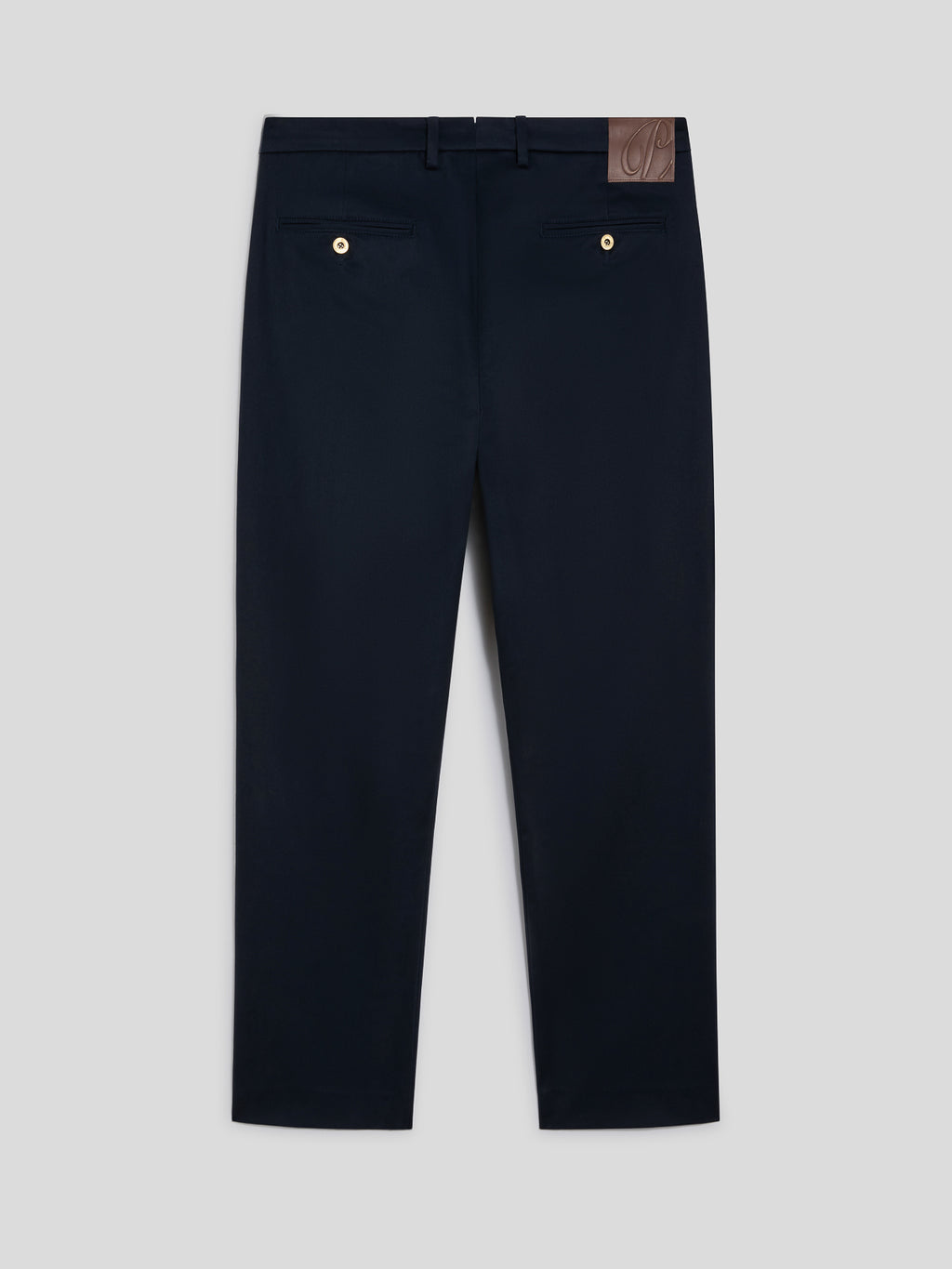 Chinos with dart, made in cotton sateen. The regular fit meets the light weight of the fabric, creating a balance of comfort and elegance. A versatile item that is ideal for those seeking an everyday style that maintains all of the elegance that is Made in Italy.