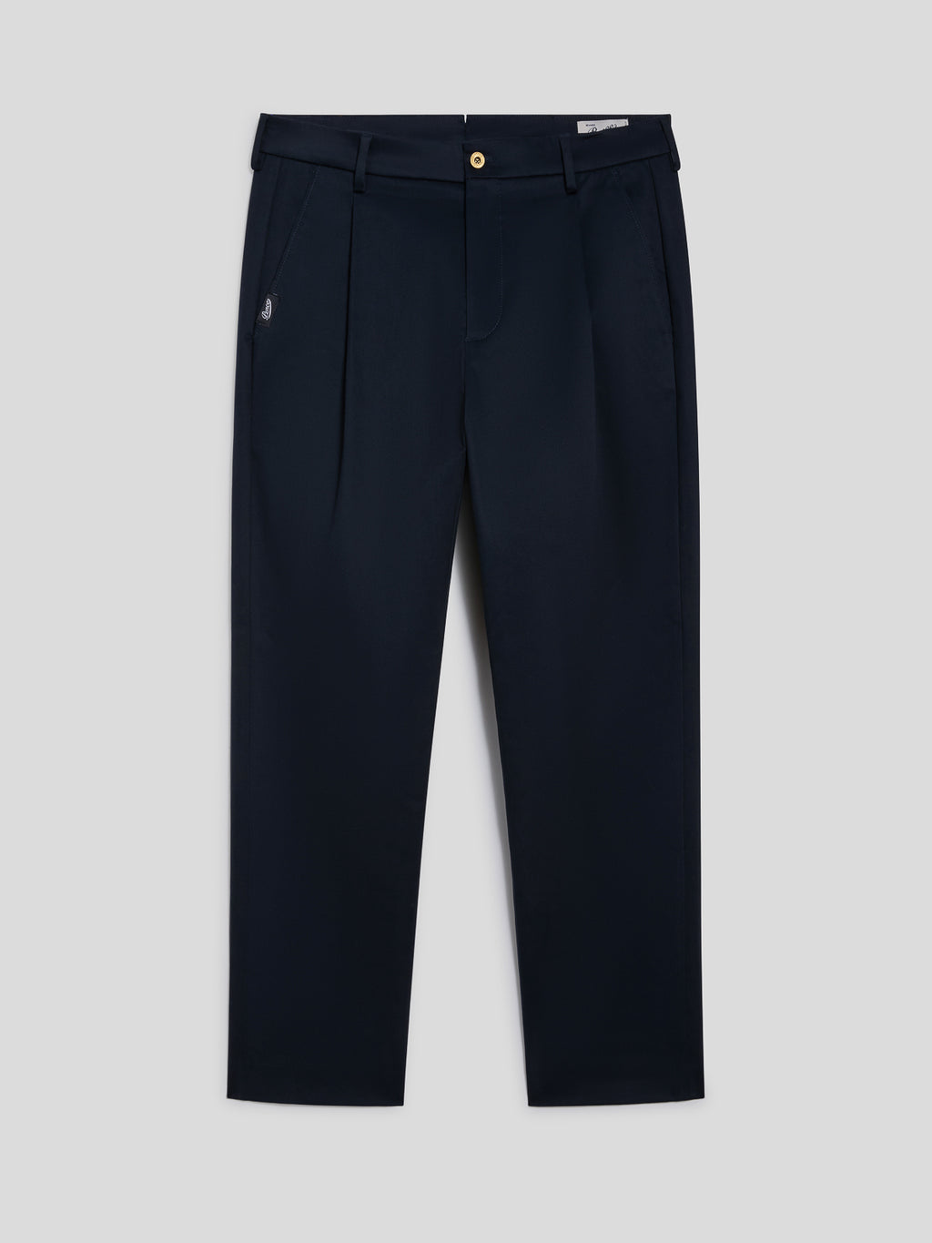 MEN'S CHINOS WITH ONE PINCES REGULAR FIT IN COTTON SATIN BLUE