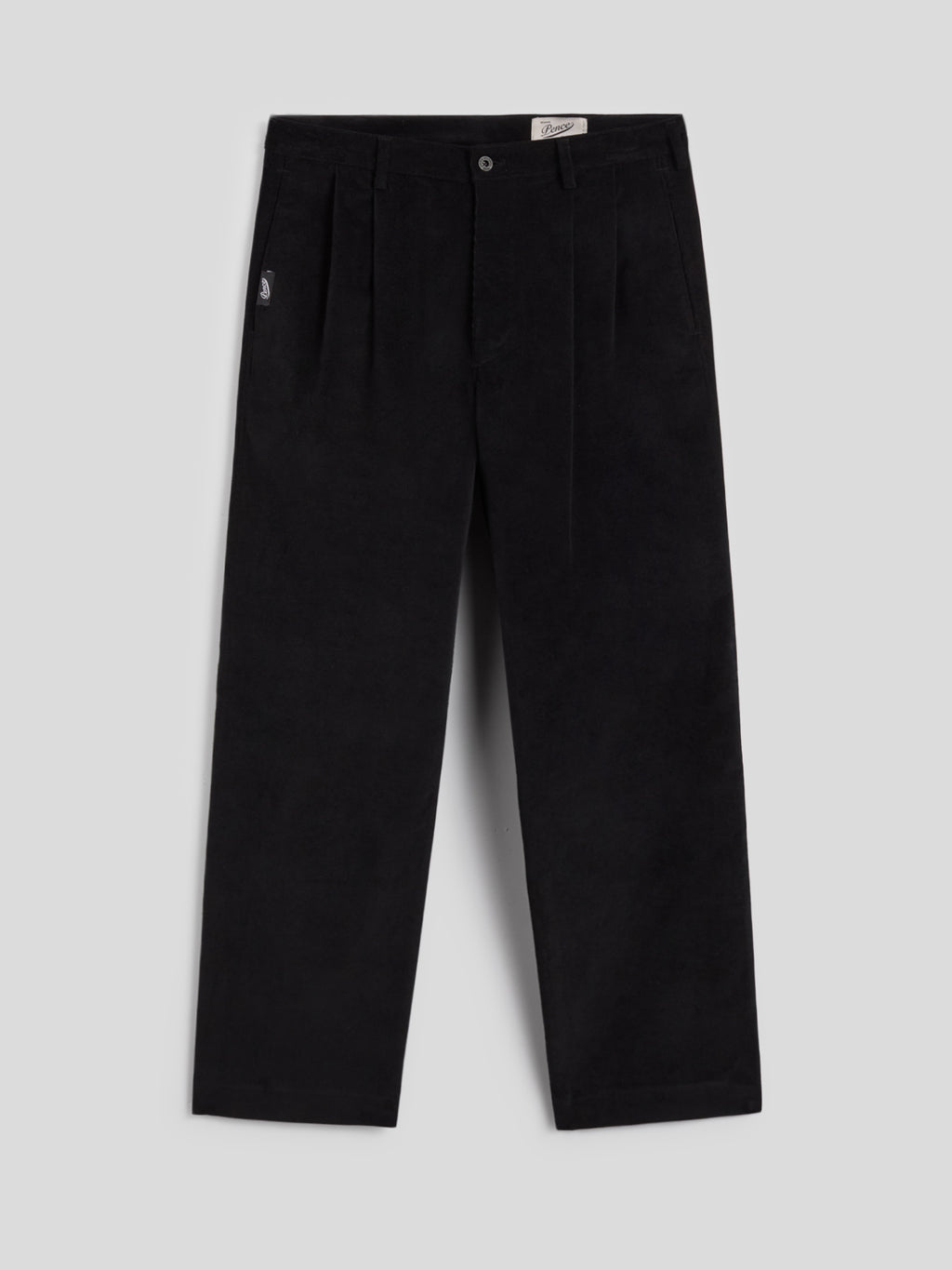 MEN'S CHINOS WITH DOUBLE PLEATS RELAXED FIT IN CORDUROY BLACK
